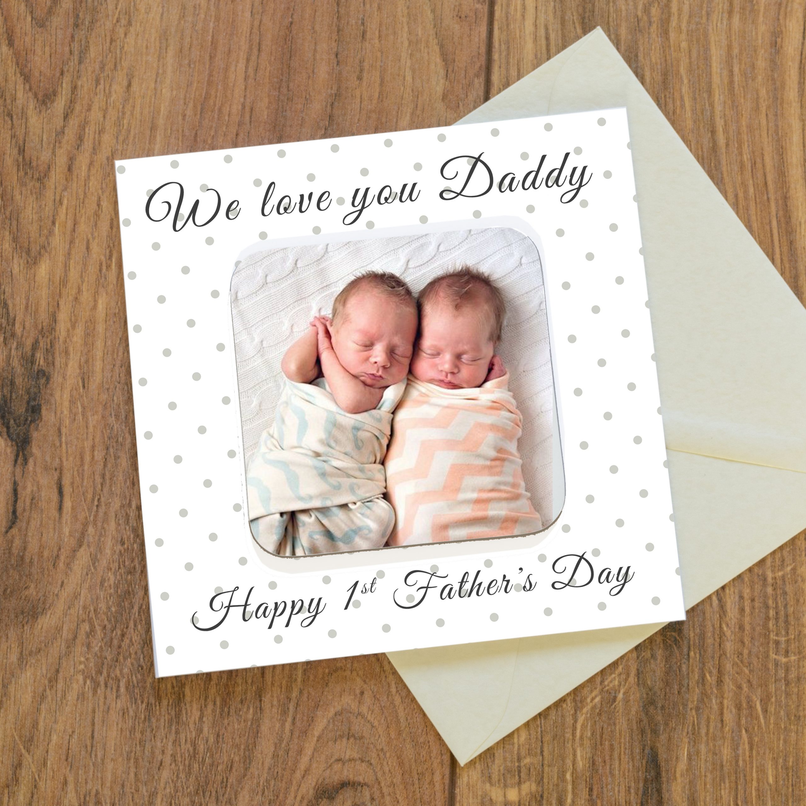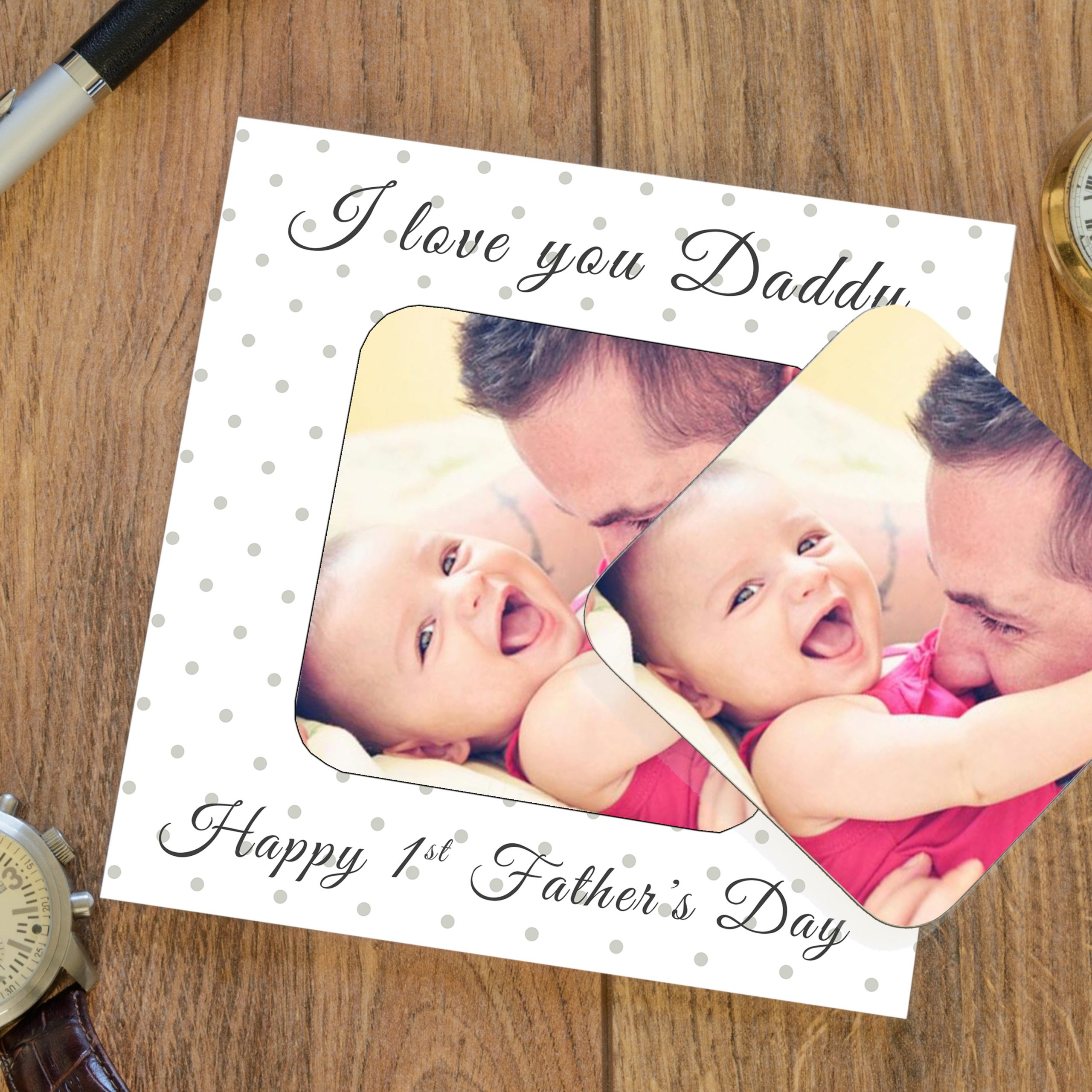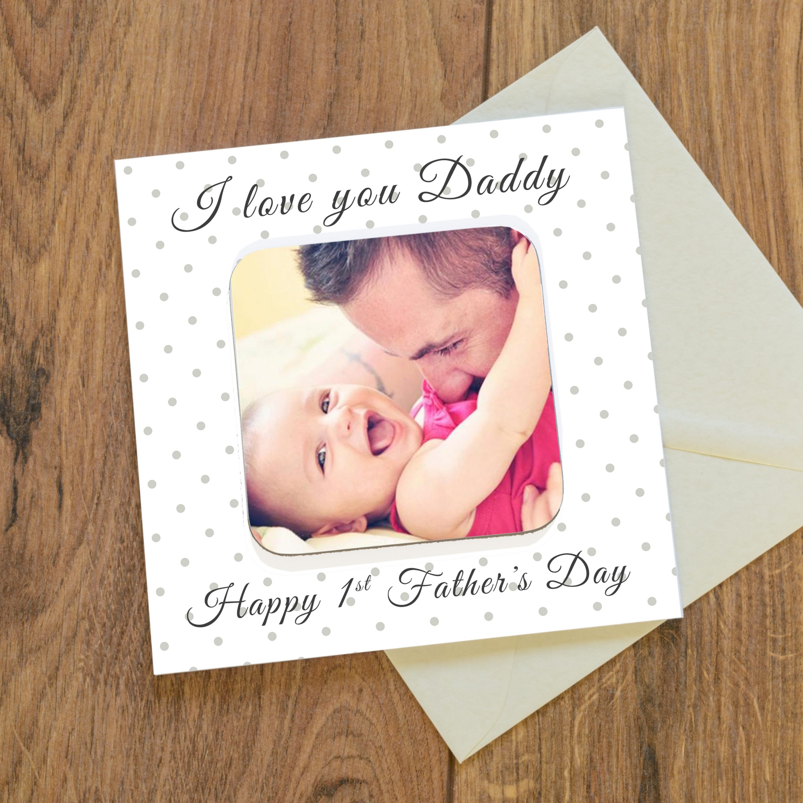 The card reads ” I or We love you Daddy” “Happy 1st Father’s Day”, just add a photo to complete the design.