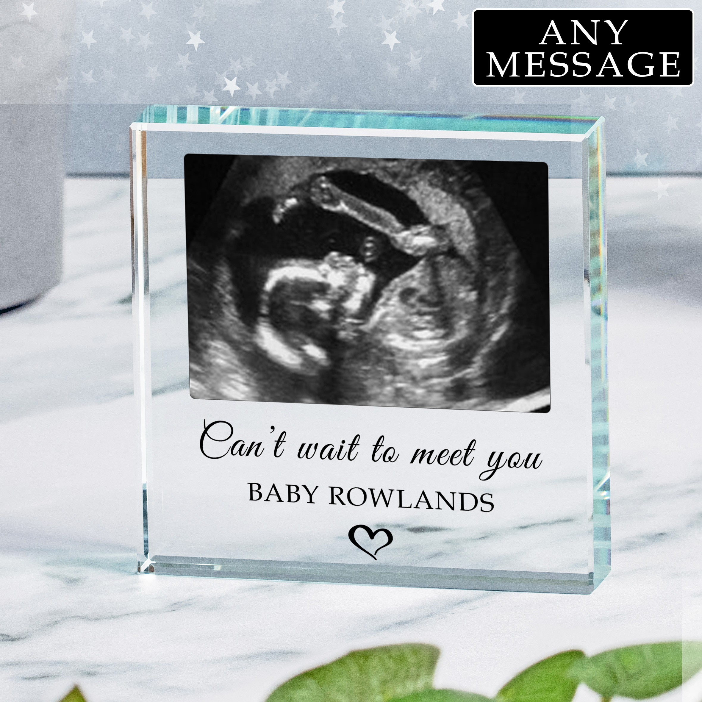 Personalise with 2 lines of text and a baby scan to make a beautiful gift and keepsake.