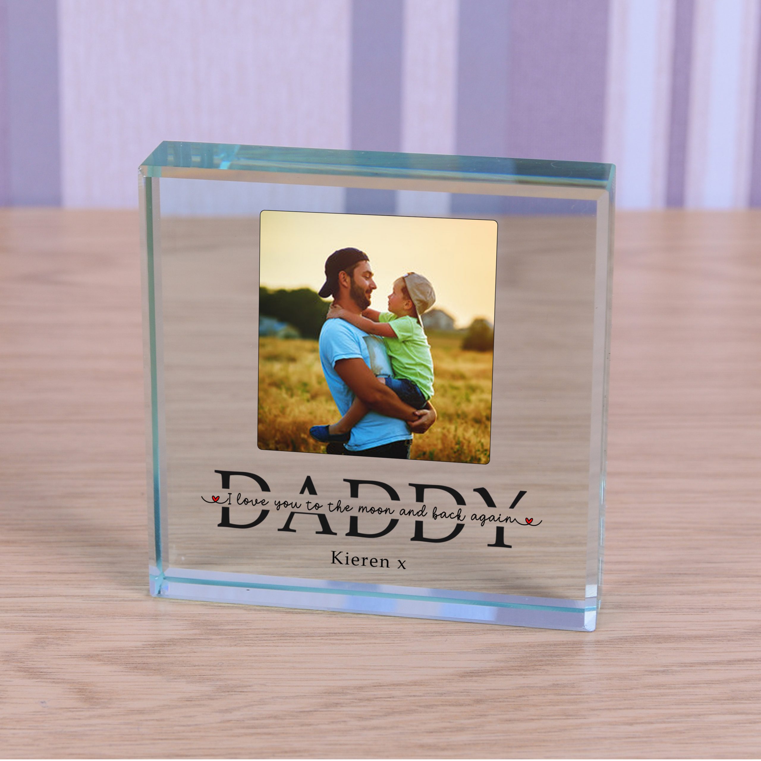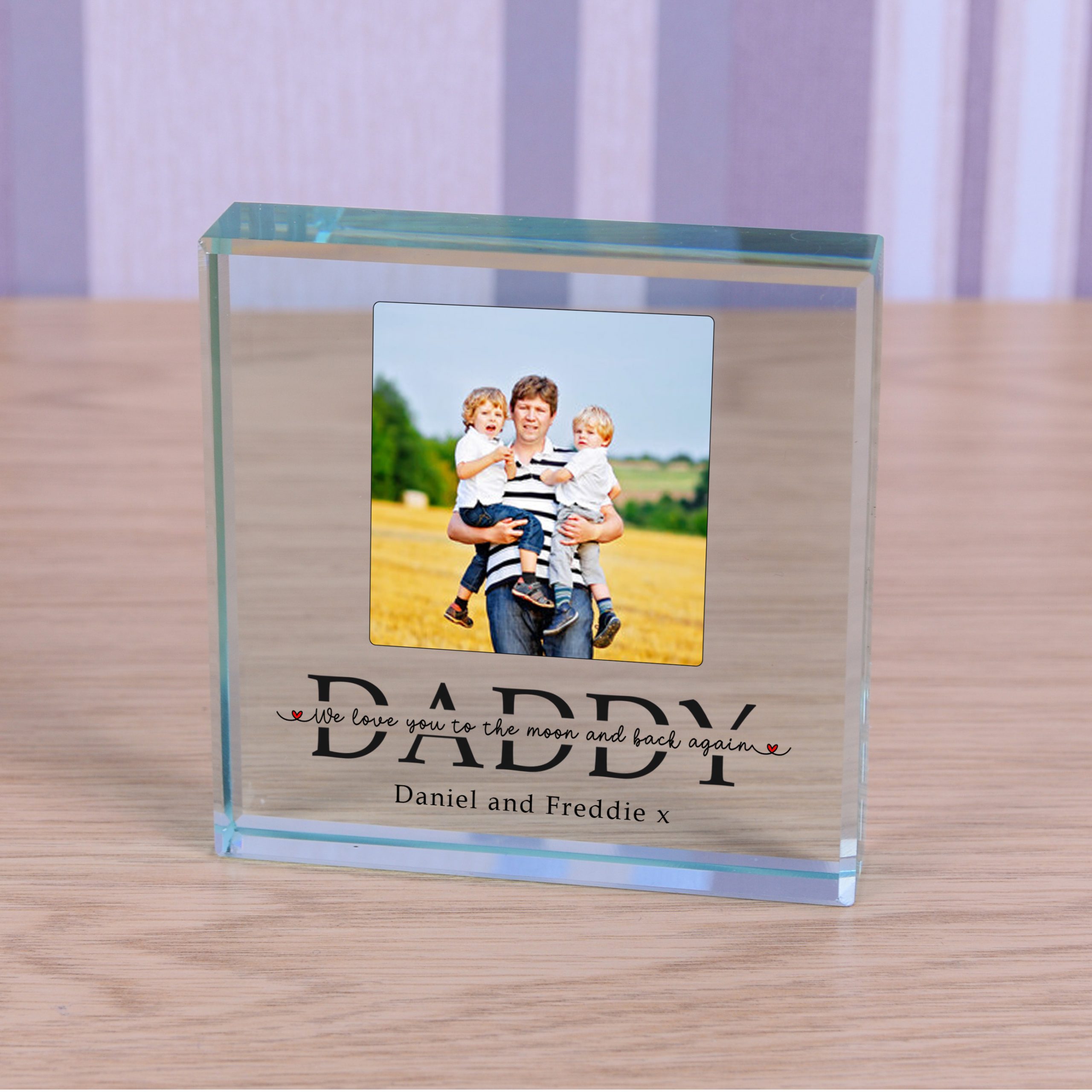 The perfect gift to show daddy he is loved to the moon and back. Made from premium glass it looks stunning as an ornament but can also be used as a paperweight.