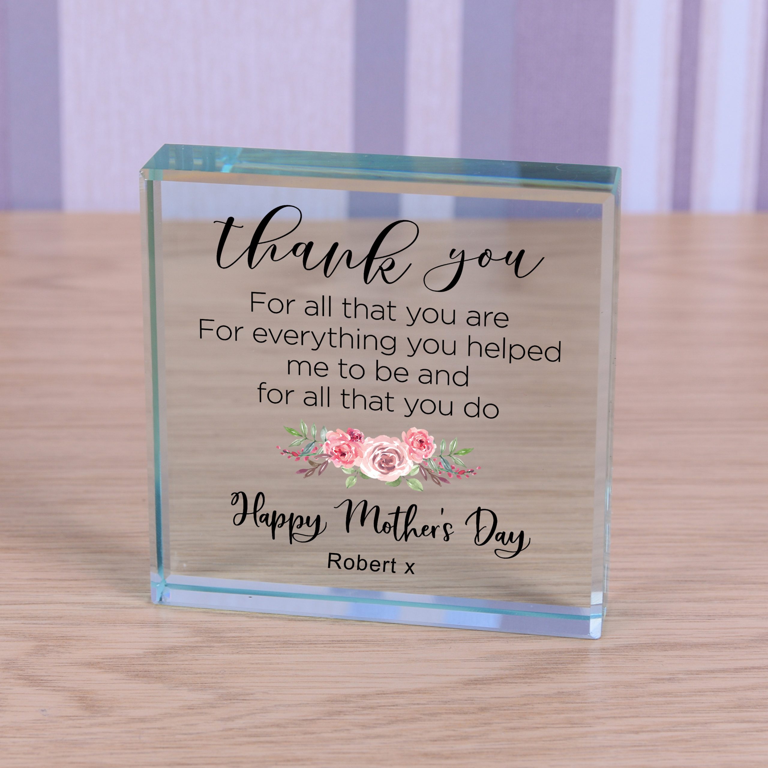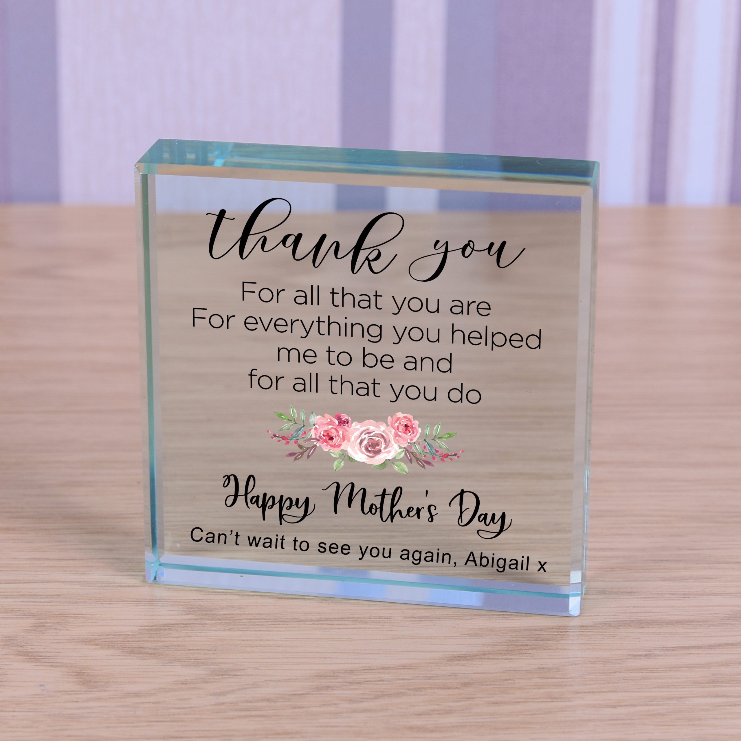 The perfect gift to thank mum and show her just how special she is this mothers day. Made from premium glass it looks stunning as an ornament but can also be used as a paperweight. Personalise with a personal message to make a beautiful gift and keepsake. Supplied in a lovely organza gift bag.