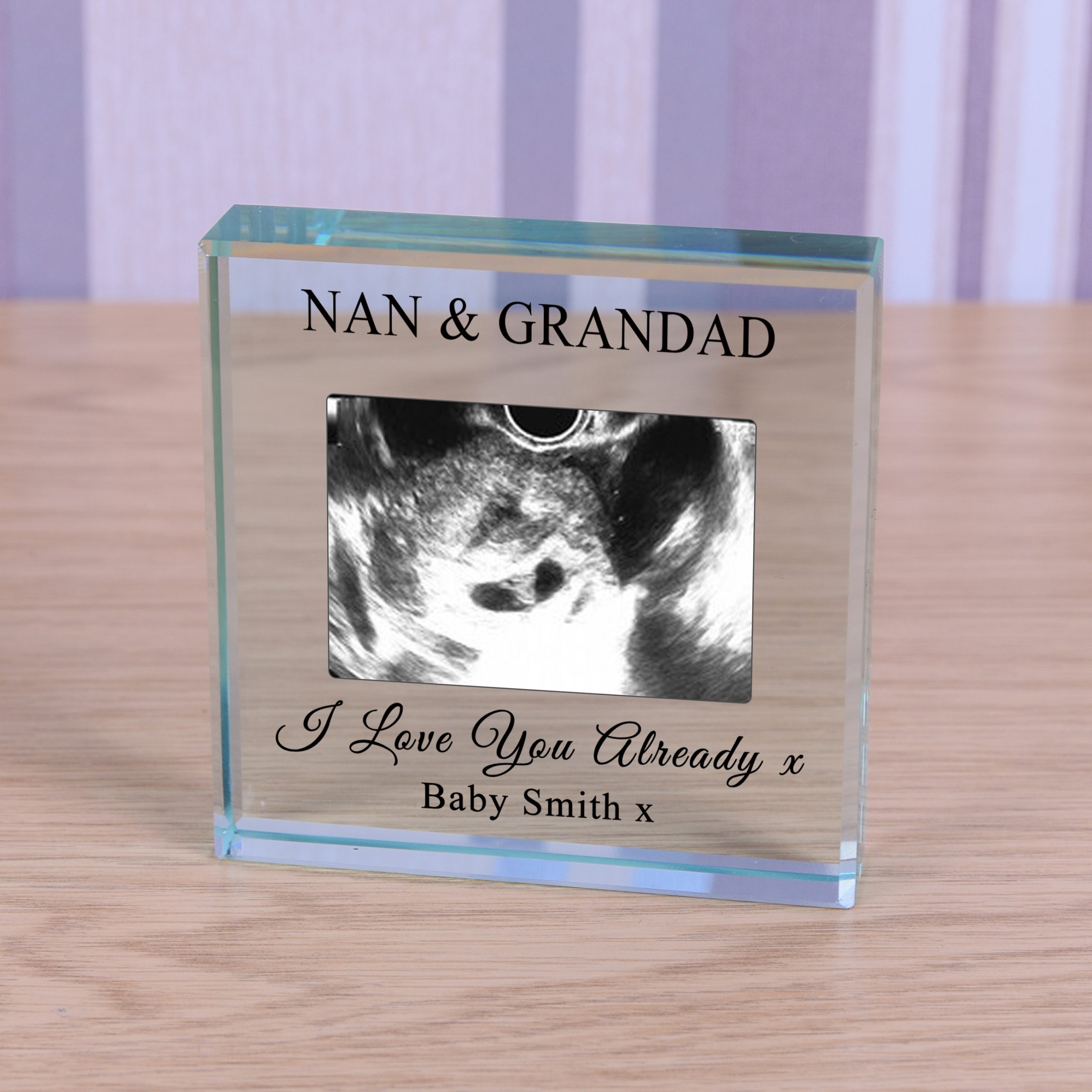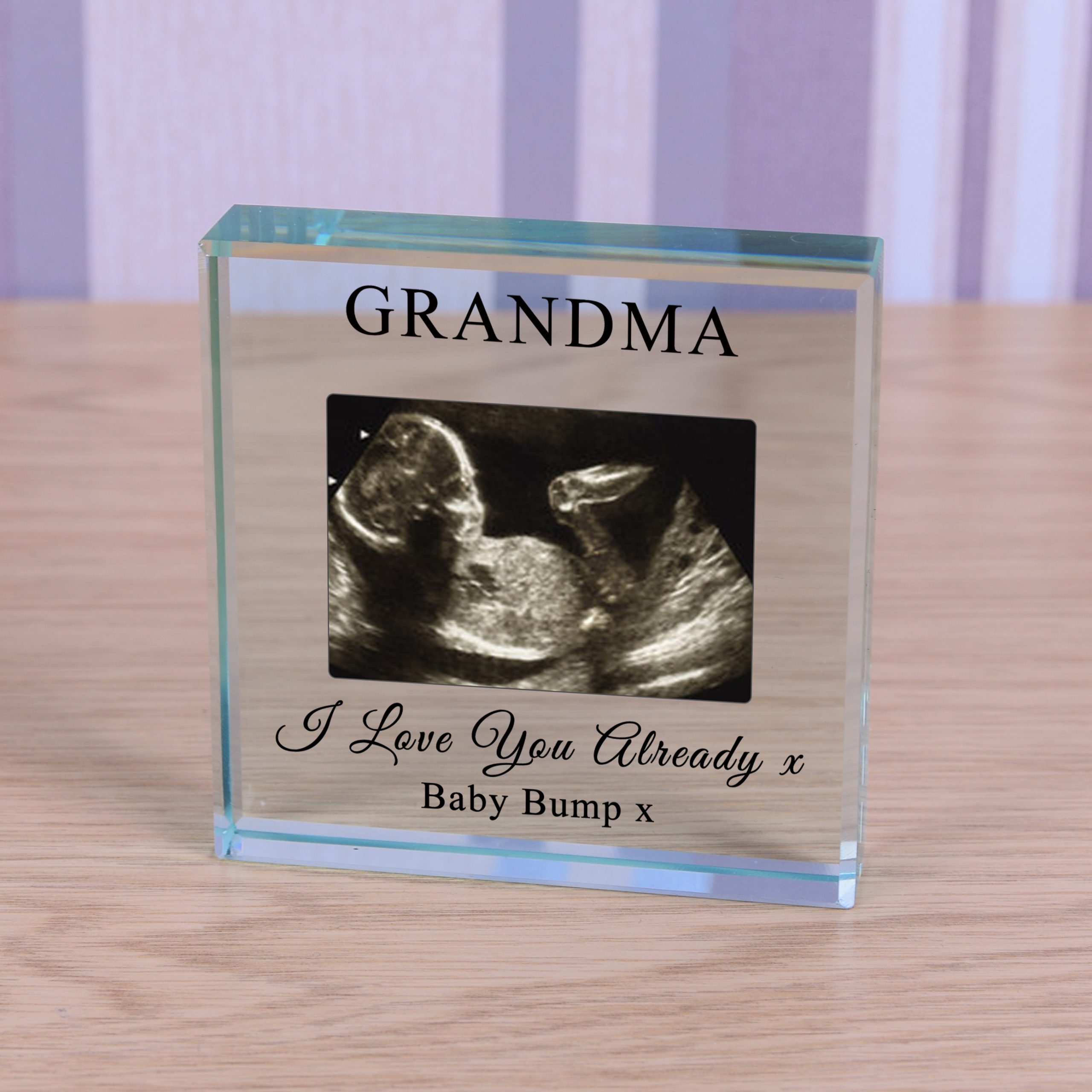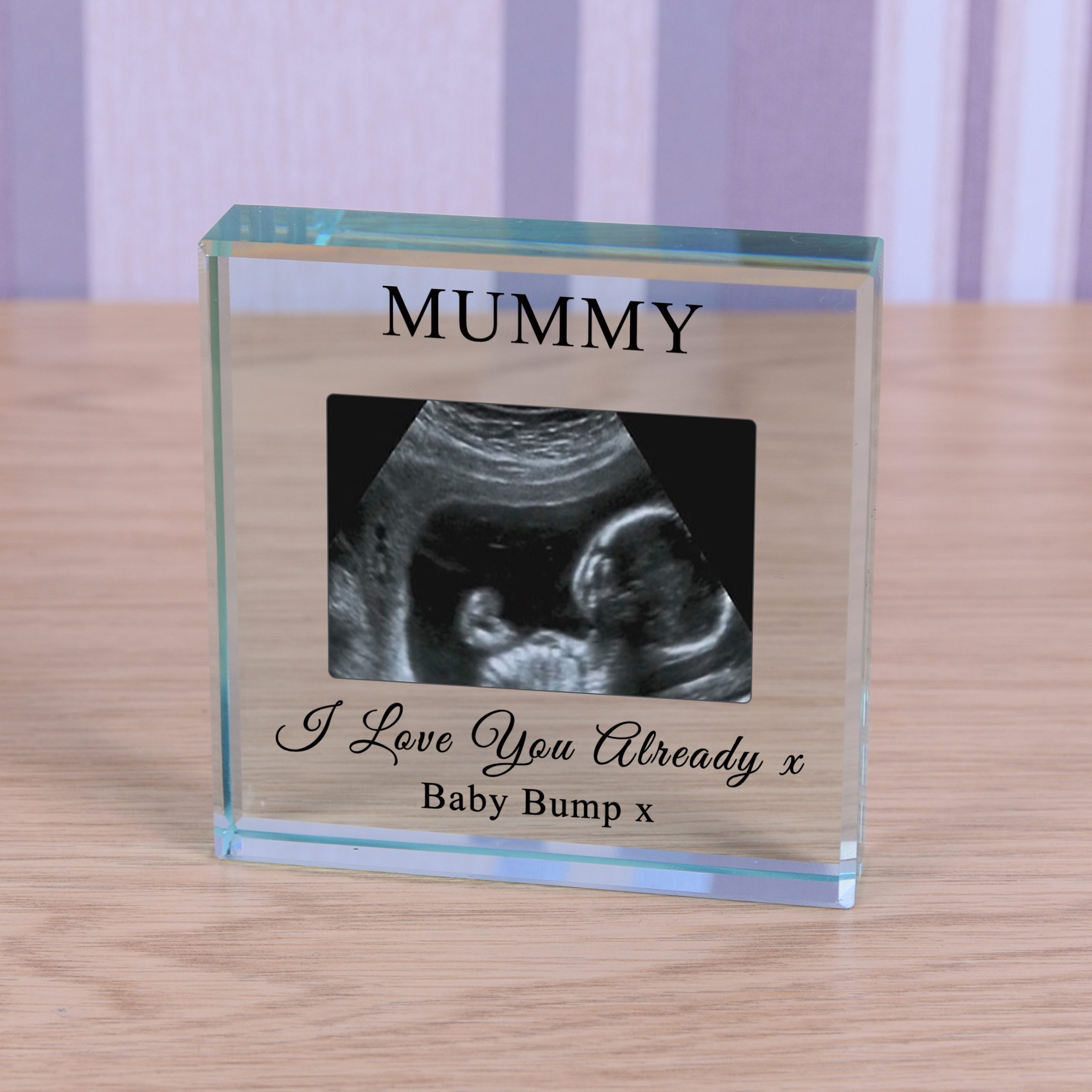 Our Love You Already Glass Token is the perfect gift to let baby bump say I love you to a loved one. Made from premium glass it looks stunning as an ornament but can also be used as a paperweight. Personalise with your choice of recipient, message and scan to make a beautiful gift and keepsake ( I love you already is fixed text) Supplied in a lovely organza gift bag.