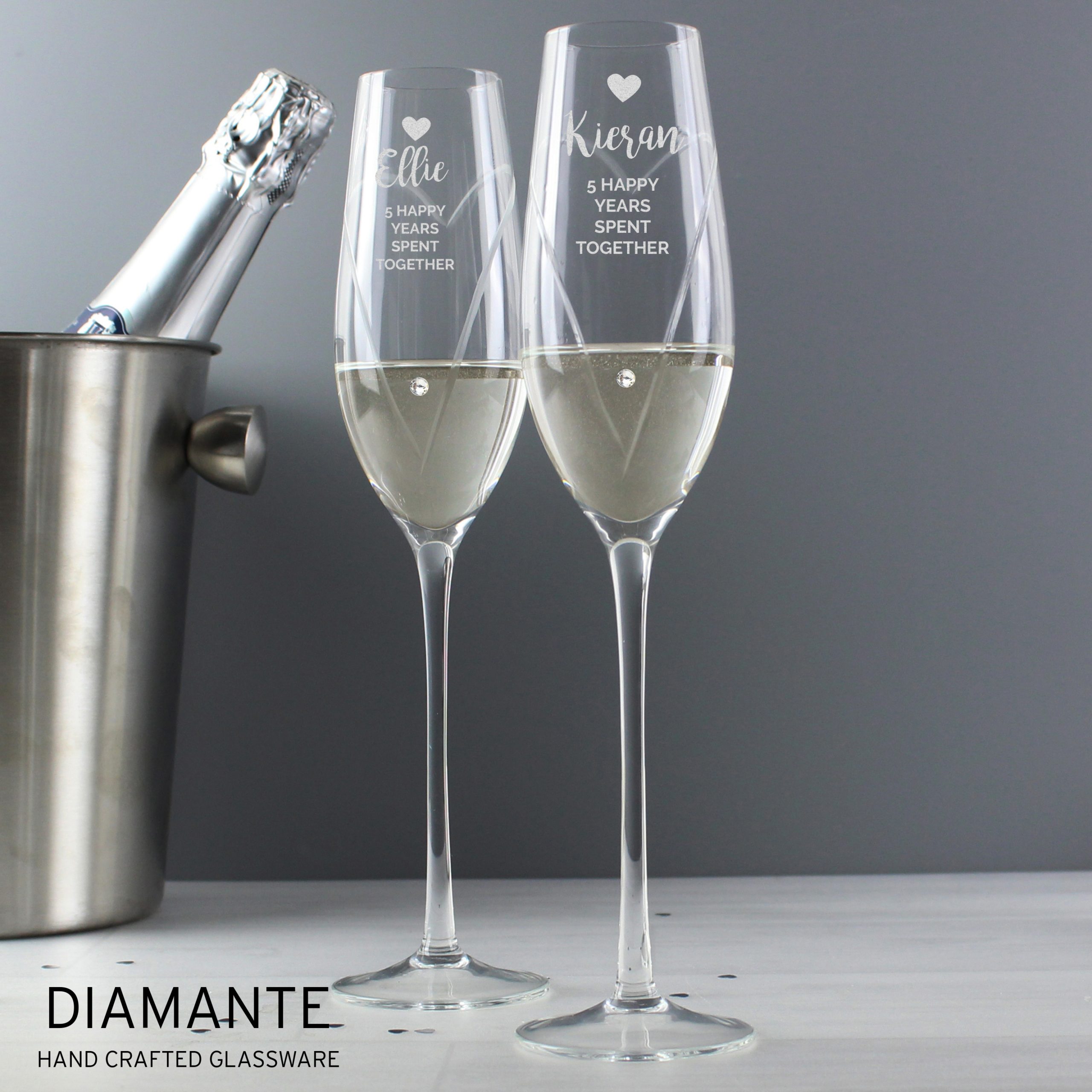 These elegant Personalised Hand Cut Heart Celebration Pair of Flutes with Gift Box make the perfect gifted to celebrate a relationship milestone.