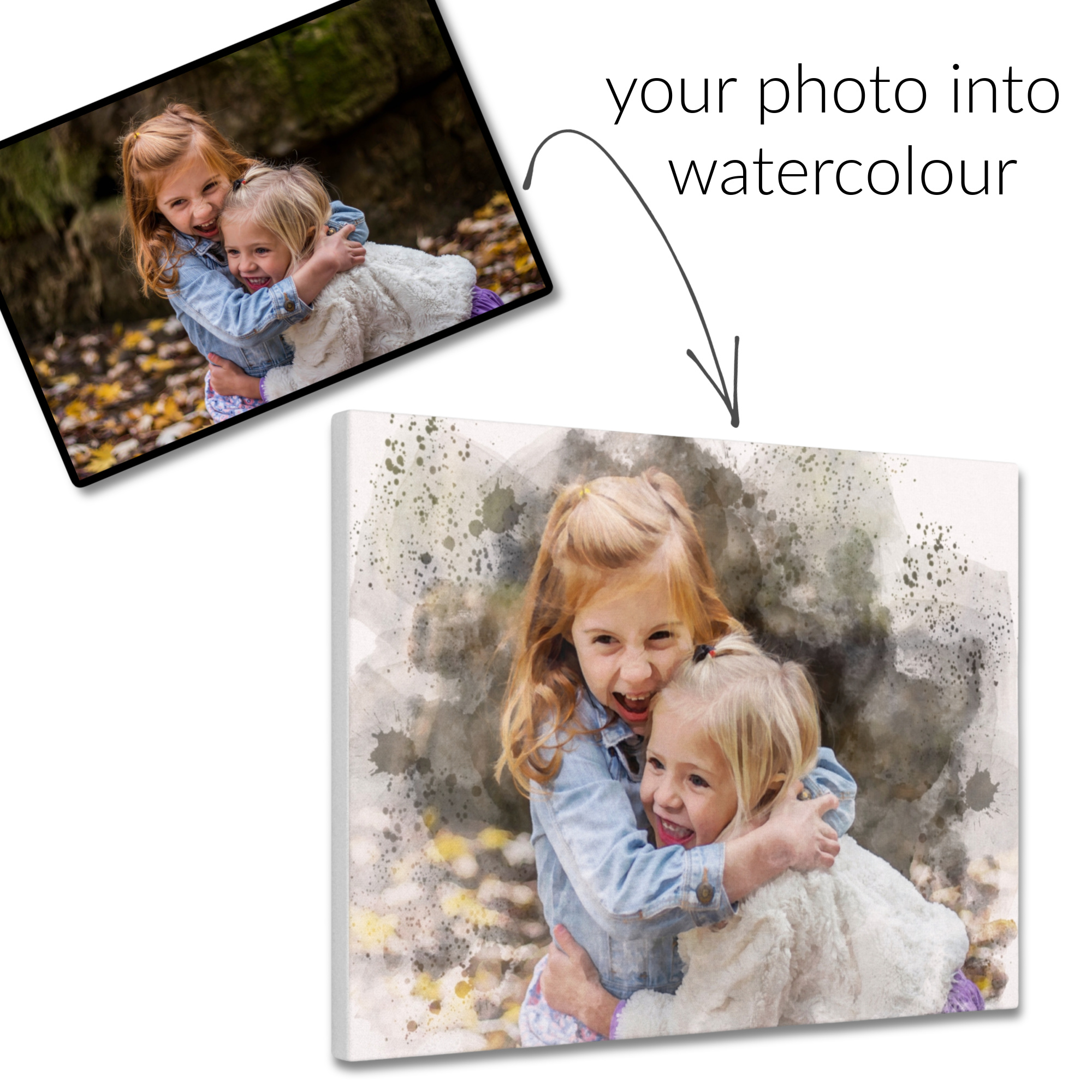Turn a simple photo into a work of art with our Personalised Watercolour Canvas and Prints.