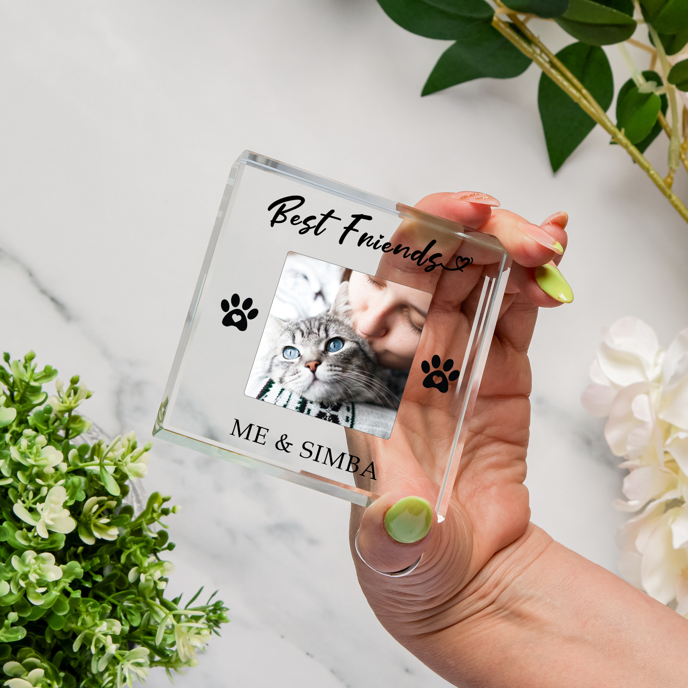 Personalise this stunning Paw Prints Pet Best Friends glass token with a message and a favourite photo. Supplied in a lovely organza gift bag.