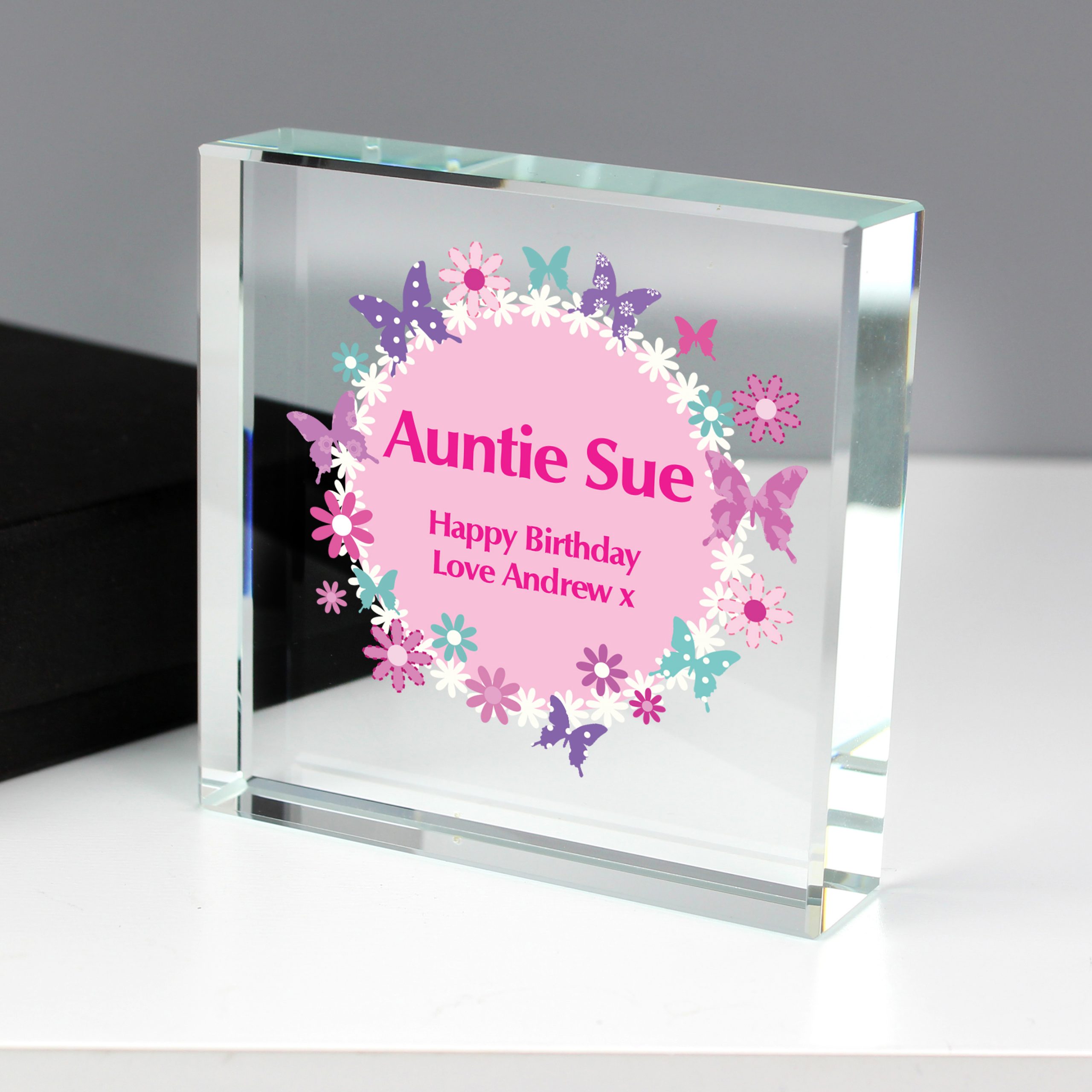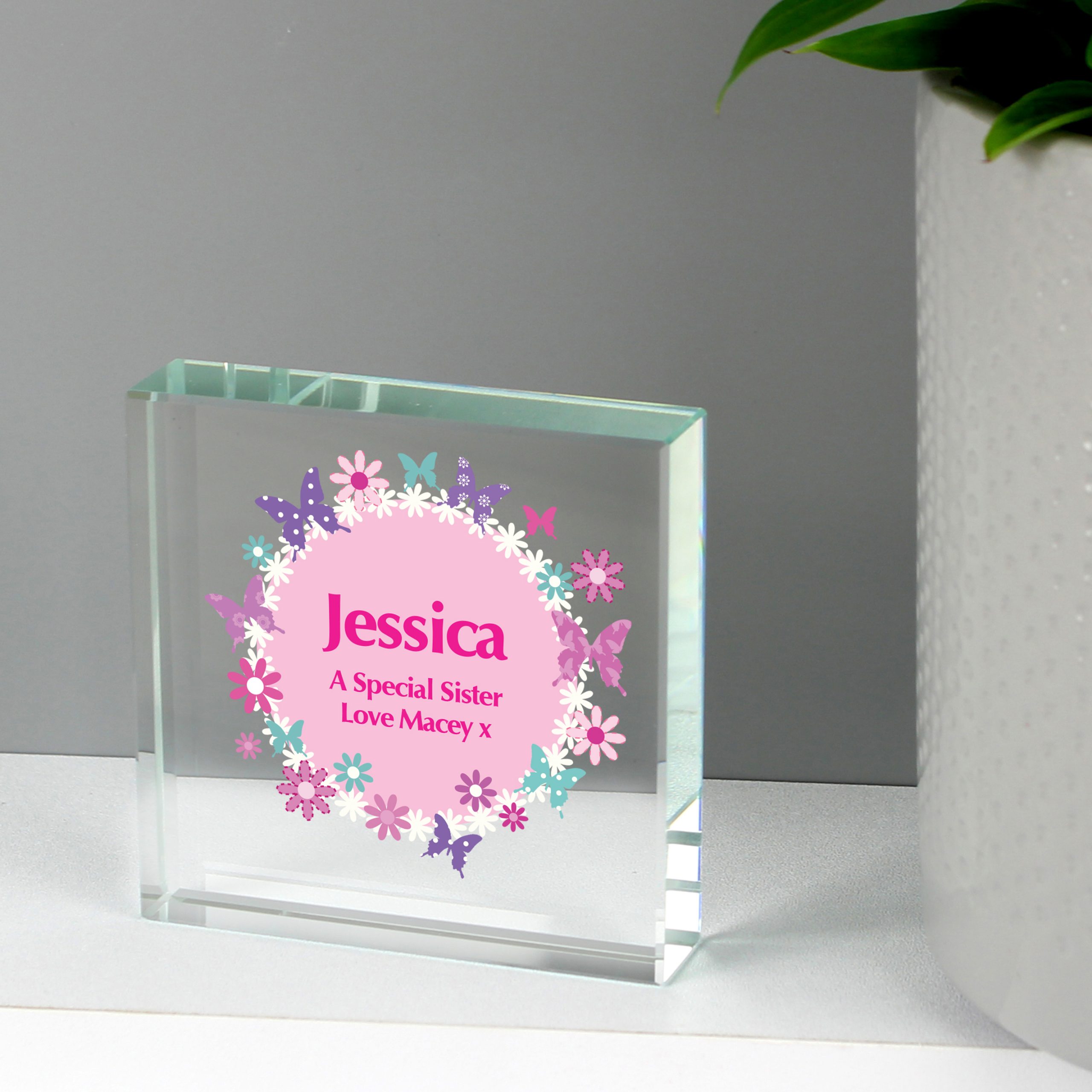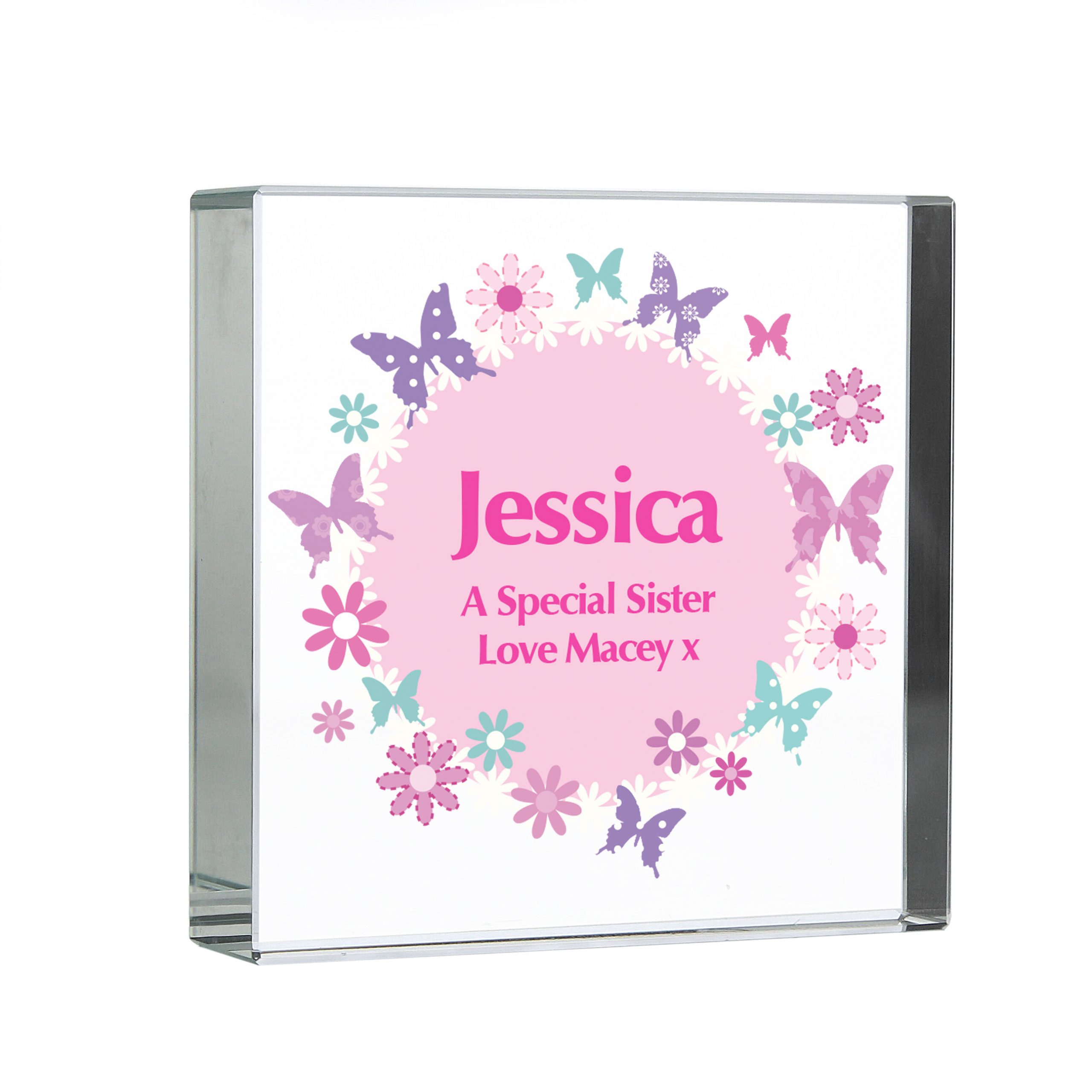 A great design for any Mum, Grandma or friend to tell them how much you love them. This large personalised glass block in a butterfly design can be personalised with any name and message.