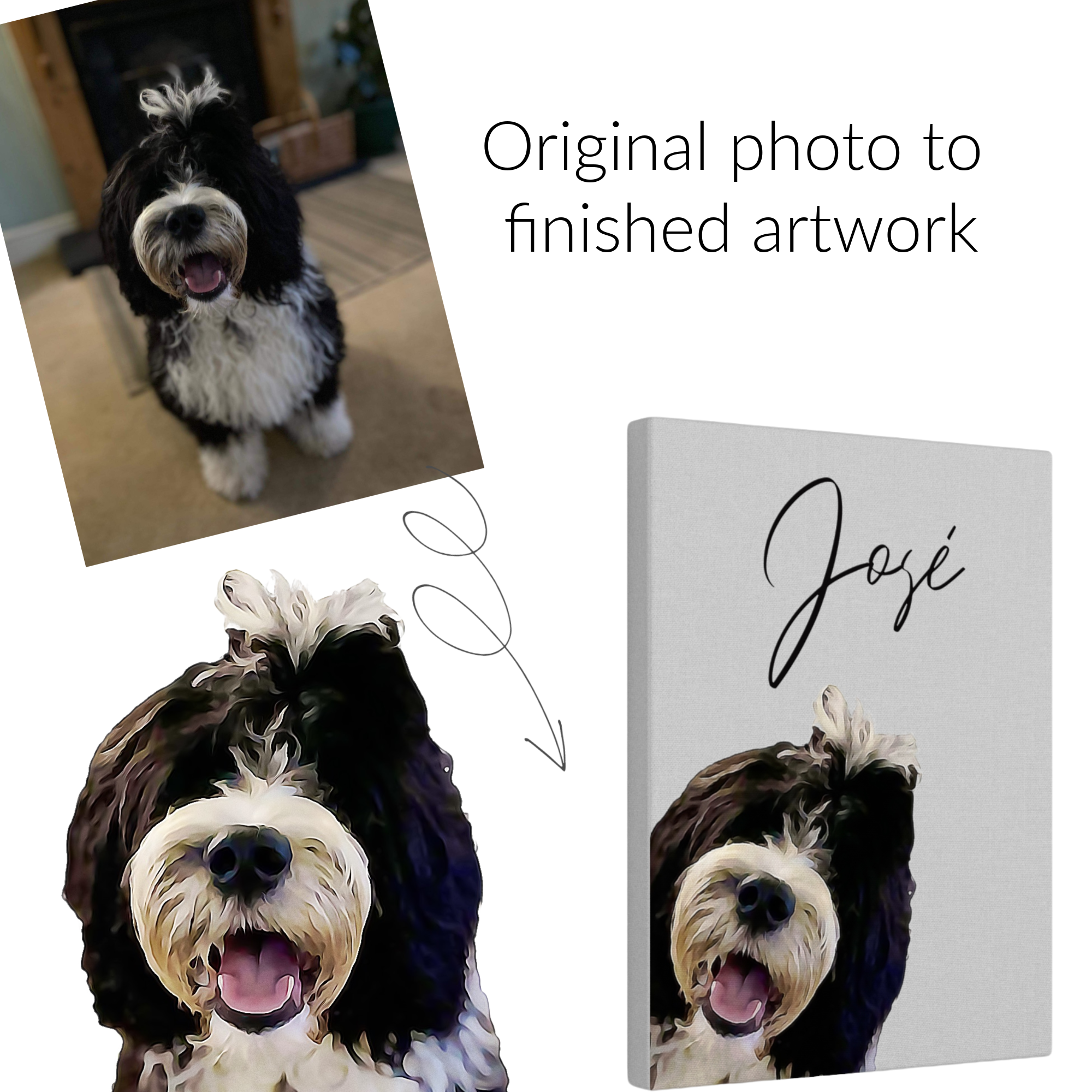 Turn a simple photo of your canine and feline friends into a work of art with our Pet Portrait Canvas and Prints.